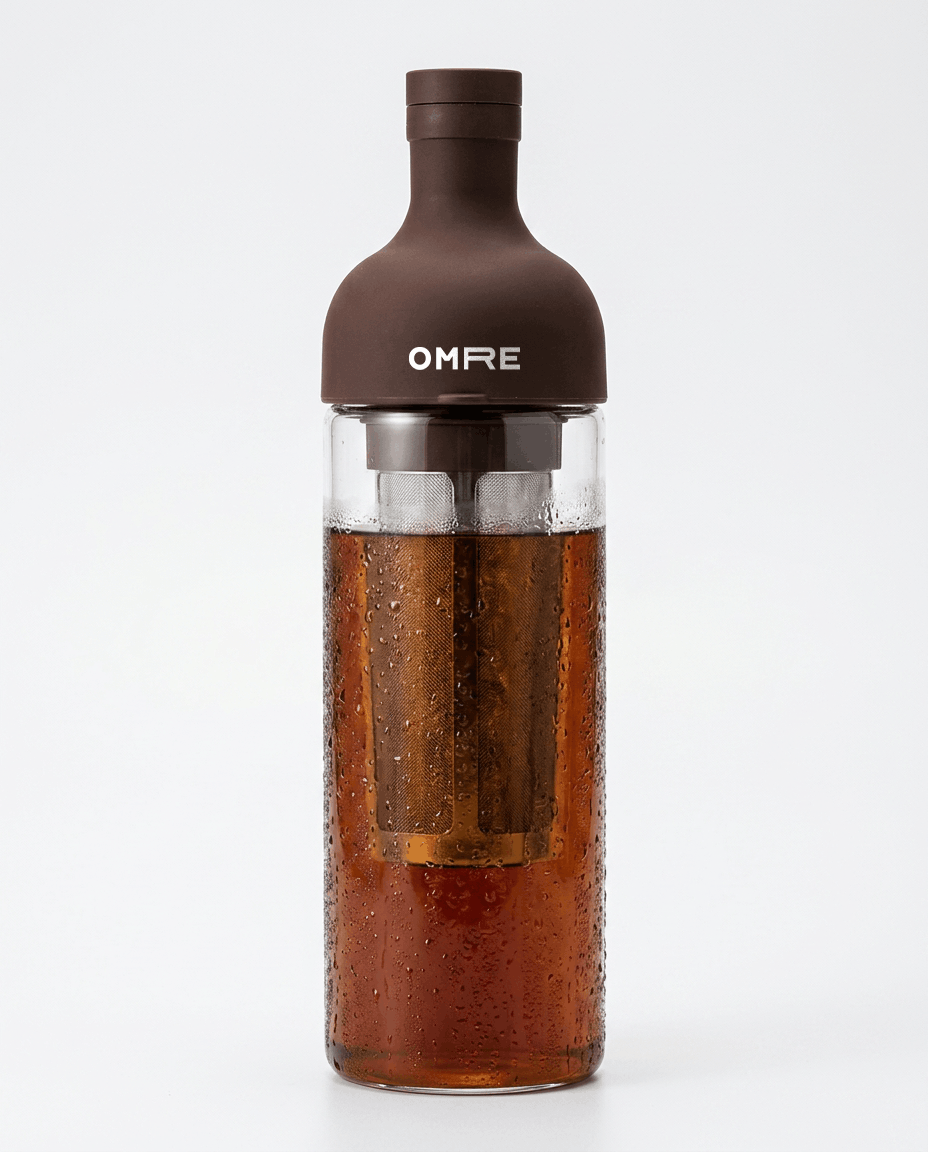 Skleněné tělo a integrovaný jemný filtr tvoří jednoduchý systém, ve kterém voda během 12 až 24 hodin postupně přebírá chuťový profil kávových zrn. Konstrukce zohledňuje čistou funkčnost – láhev slouží pro přípravu, extrakci v chladničce i následné servírování. Vzniklý nápoj se vyznačuje nižší aciditou a přirozenou nasládlostí. Jde o metodu, která zcela eliminuje rychlost ve prospěch trpělivosti a maximálního zachování vlastností původní suroviny.